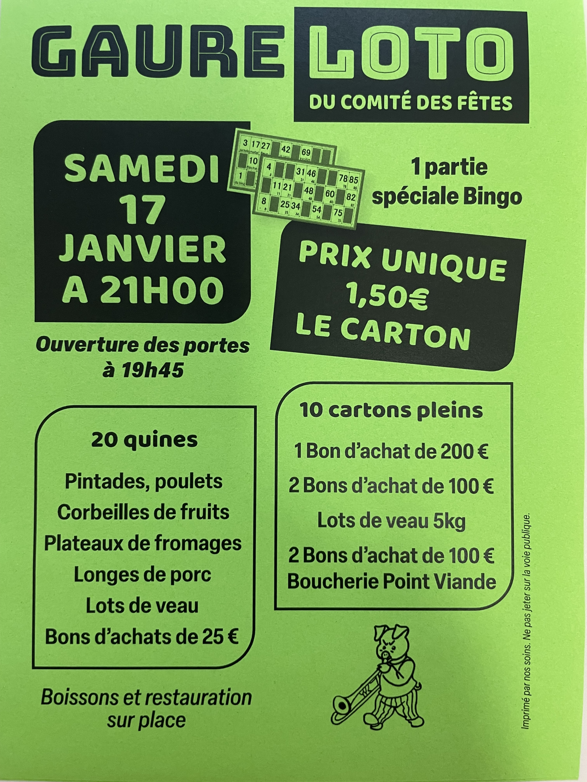 Accueil | Comité des fêtes : prochain LOTO le samedi 17 janvier à 21 heures