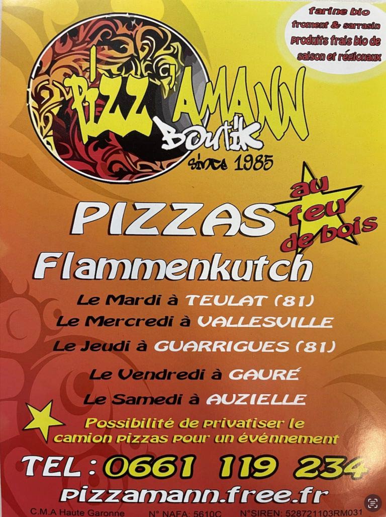 N’oubliez pas le camion pizza en face de la mairie tous les vendredis à partir de 18 heures.