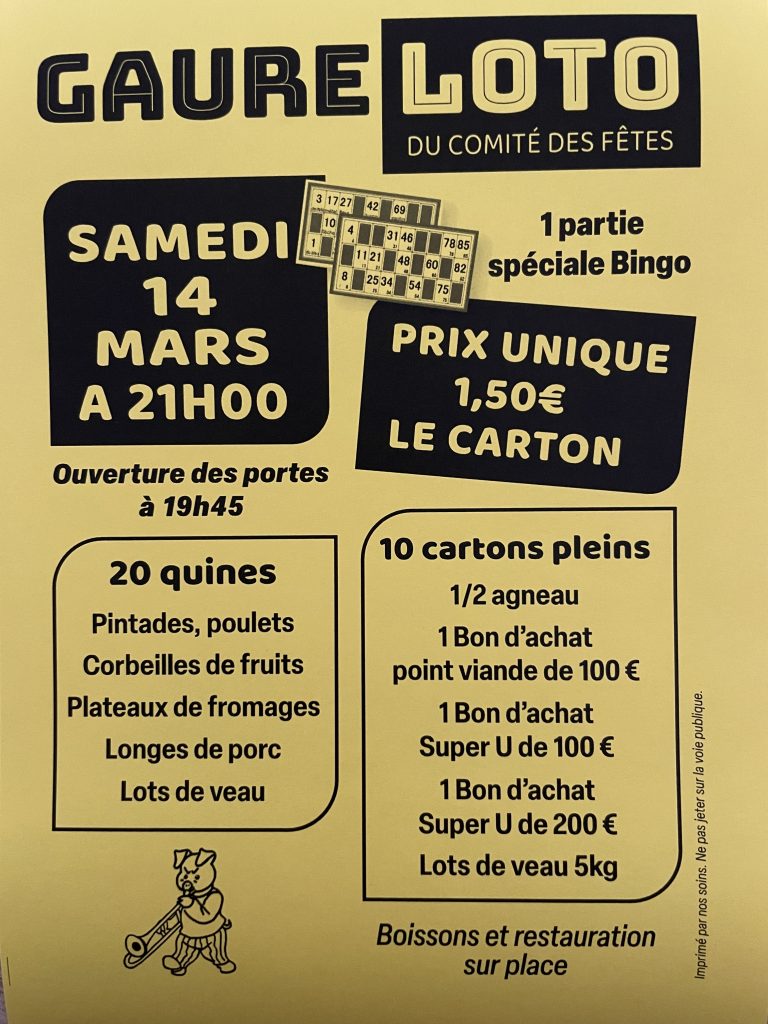 Comité des fêtes : prochain LOTO le samedi 14 mars à 21 heures